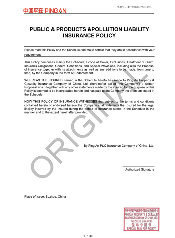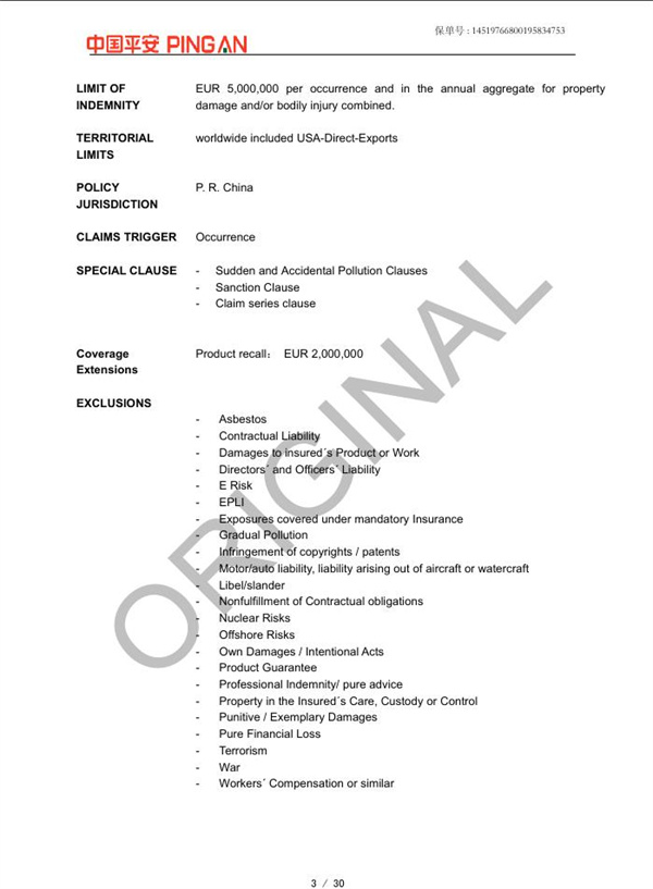 全球范围产品责任险